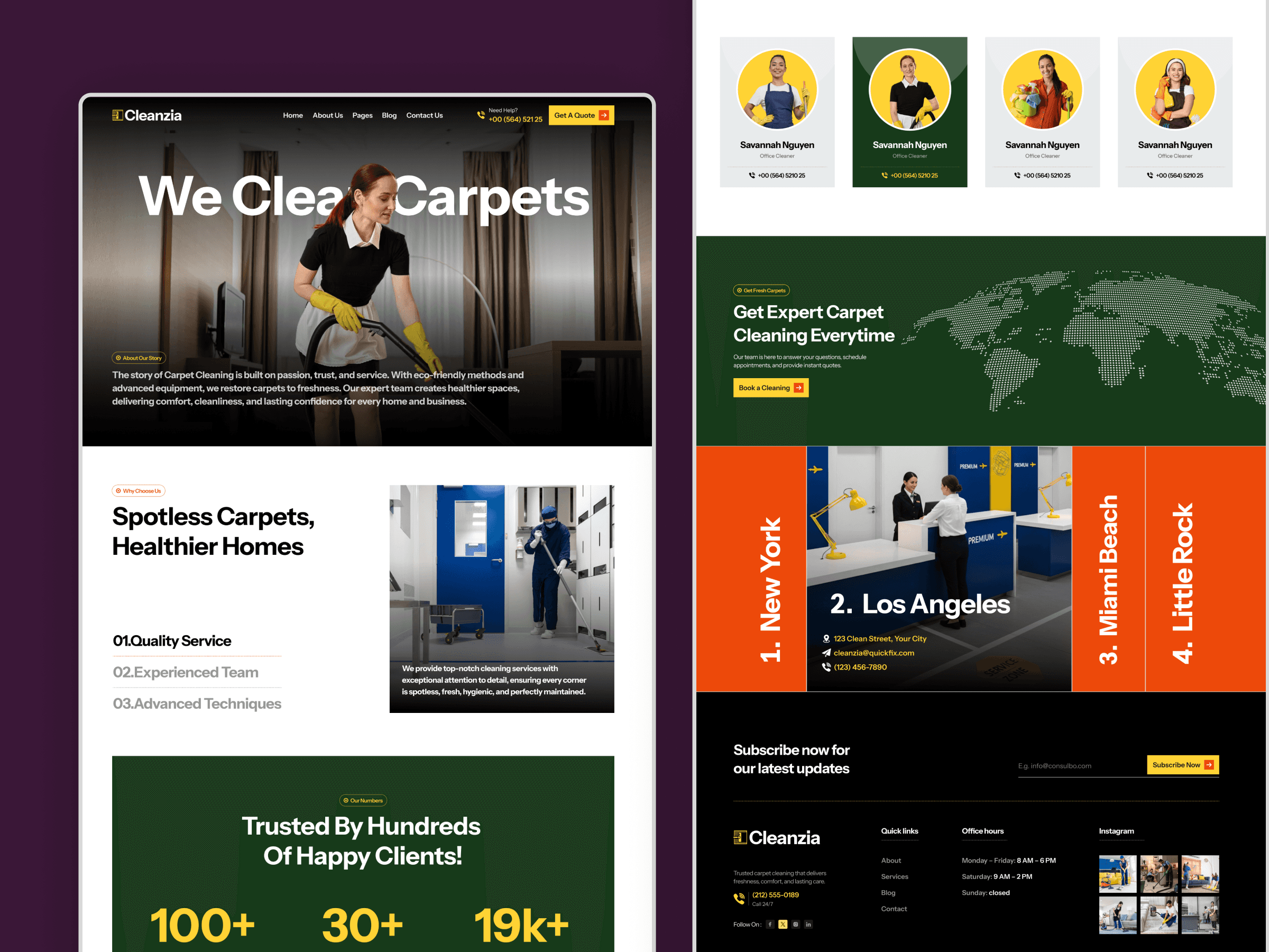 Cleanzia is a clean, modern Framer template for carpet cleaning and home-care businesses. Showcase services, highlight results, and let customers book appointments effortlessly.