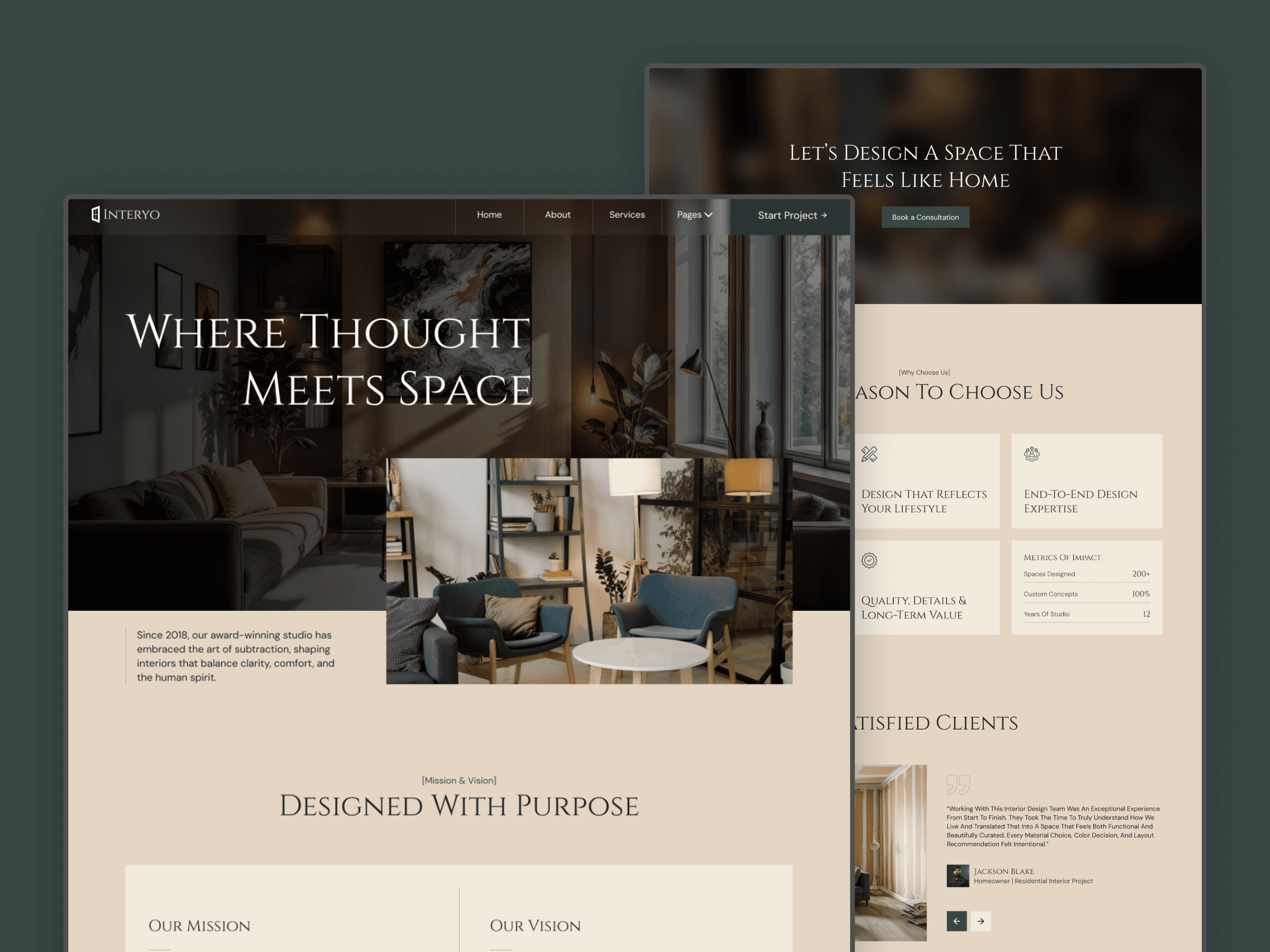 Interyo is designed for interior designers, architecture studios, and creative professionals who want their work to speak for itself. The layout is calm, spacious, and visually balanced—allowing your designs, projects, and ideas to stand out without distraction.
