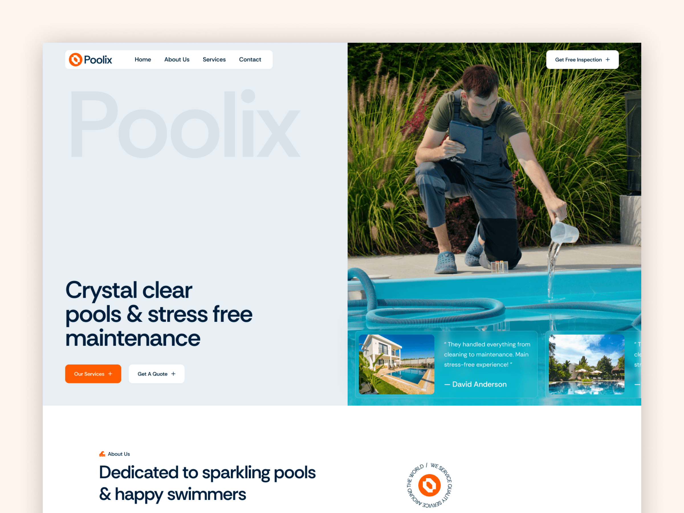 Poolix is designed for pool maintenance businesses, cleaning professionals, and outdoor service companies looking for a clean, inviting, and easy-to-manage website. With a water-inspired aesthetic and balanced layout, it gives your brand a refreshing and trustworthy online presence.
