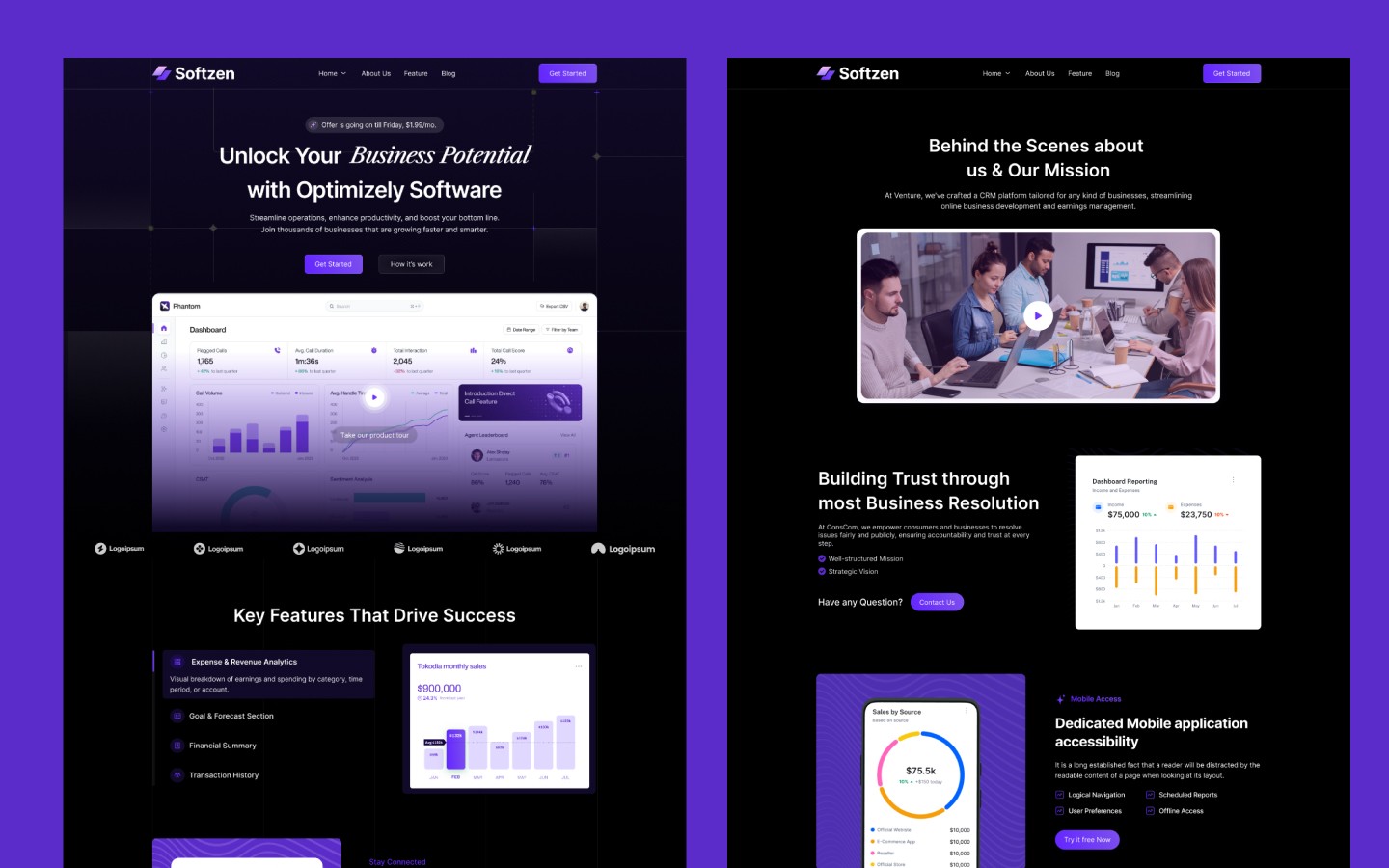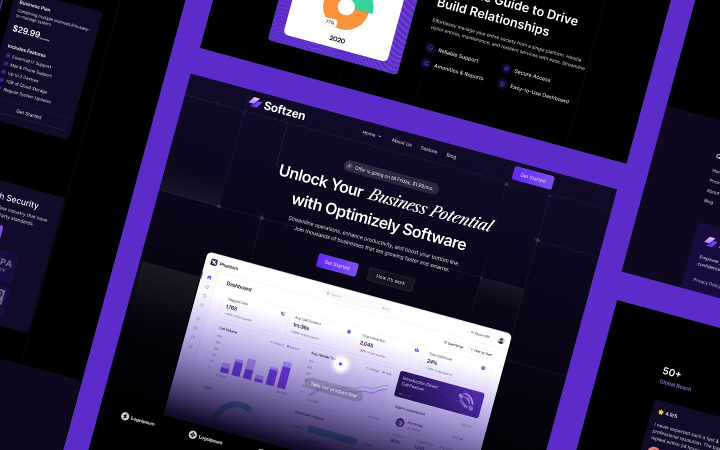 Softzen is a premium Webflow template crafted specifically for SaaS startups, software companies, and digital product businesses. With a clean, conversion-focused design, it enables you to present your product features, pricing plans, customer testimonials, and blogs in a way that builds trust and drives growth.